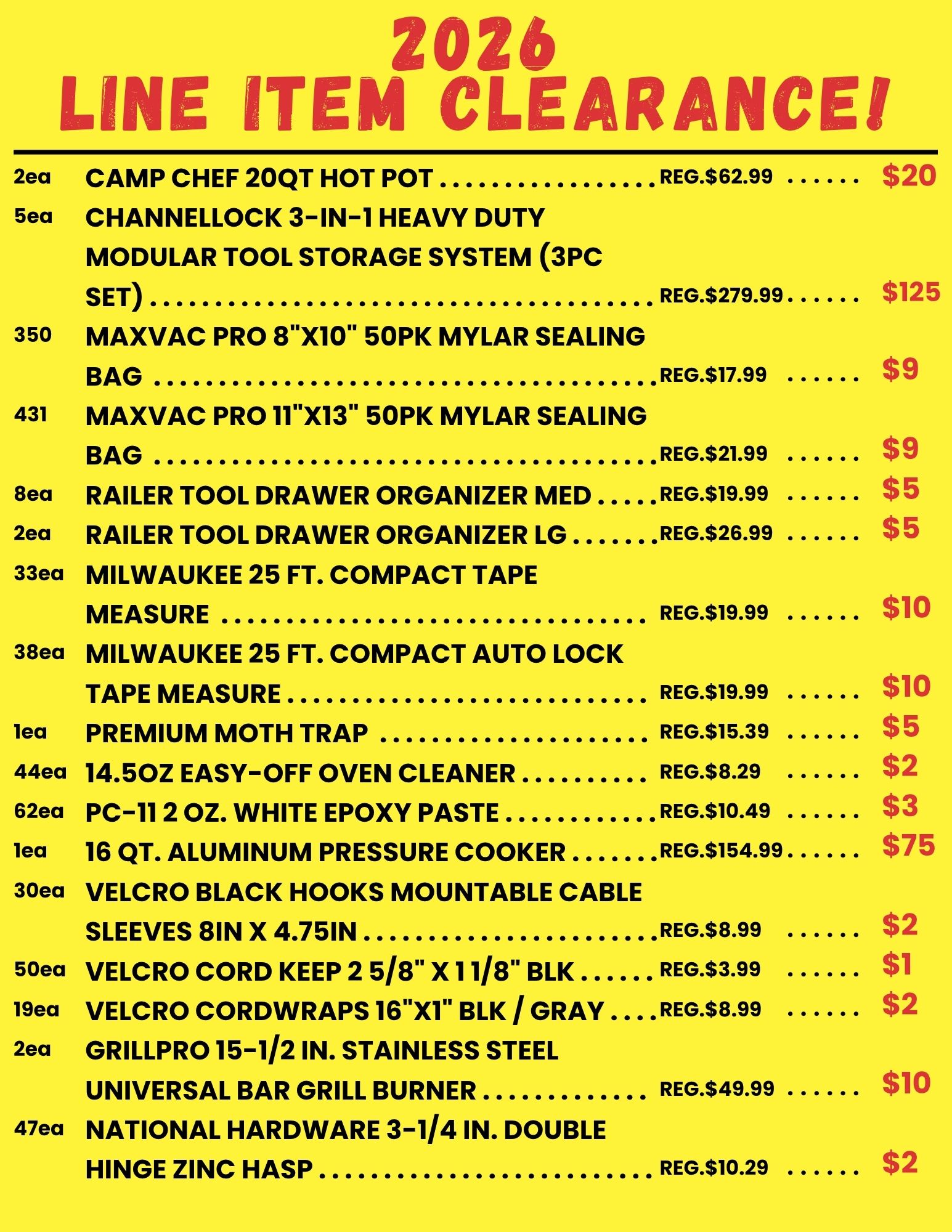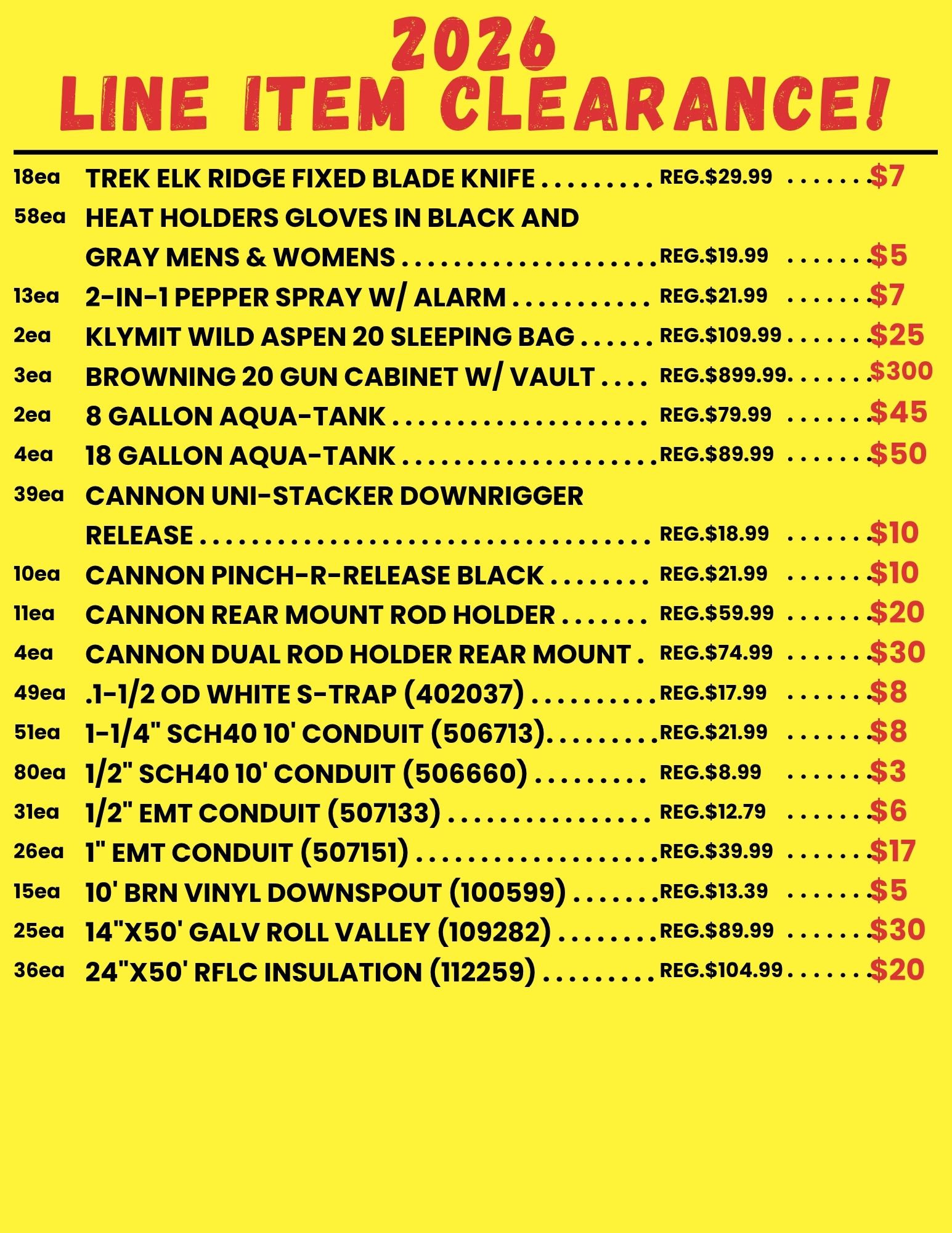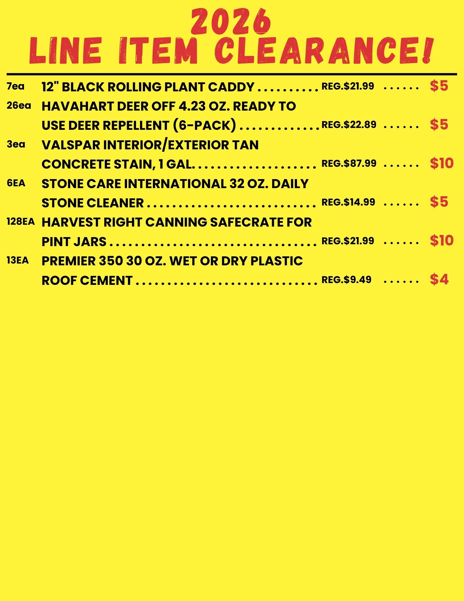 BROWSE OUR LINE ITEM CLEARANCE SALE FOR 2026!