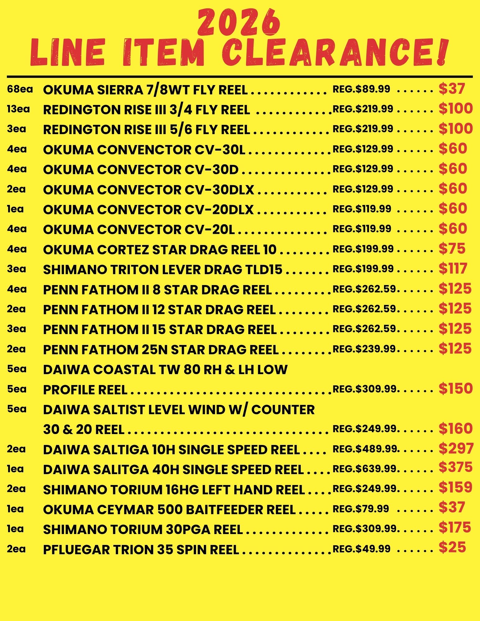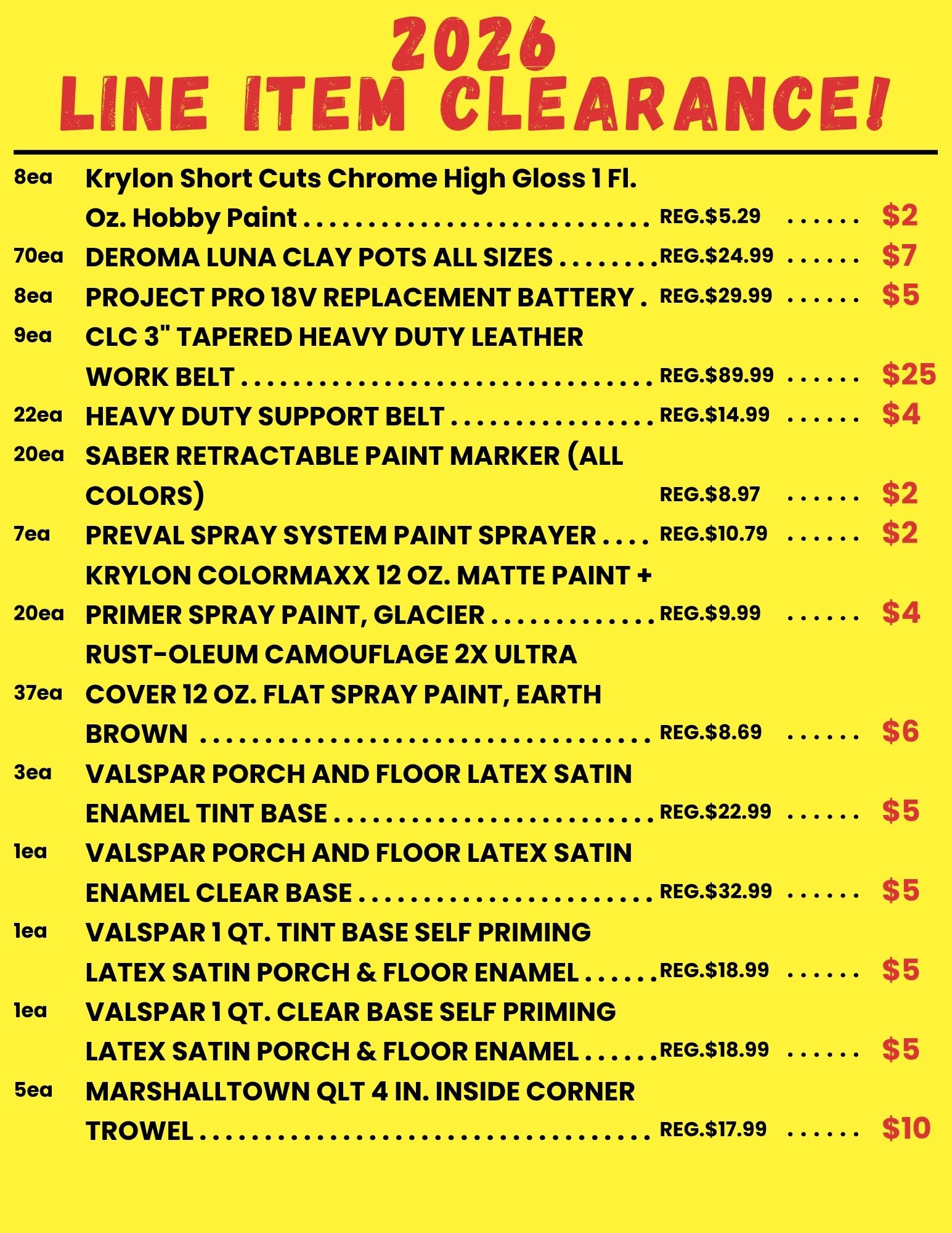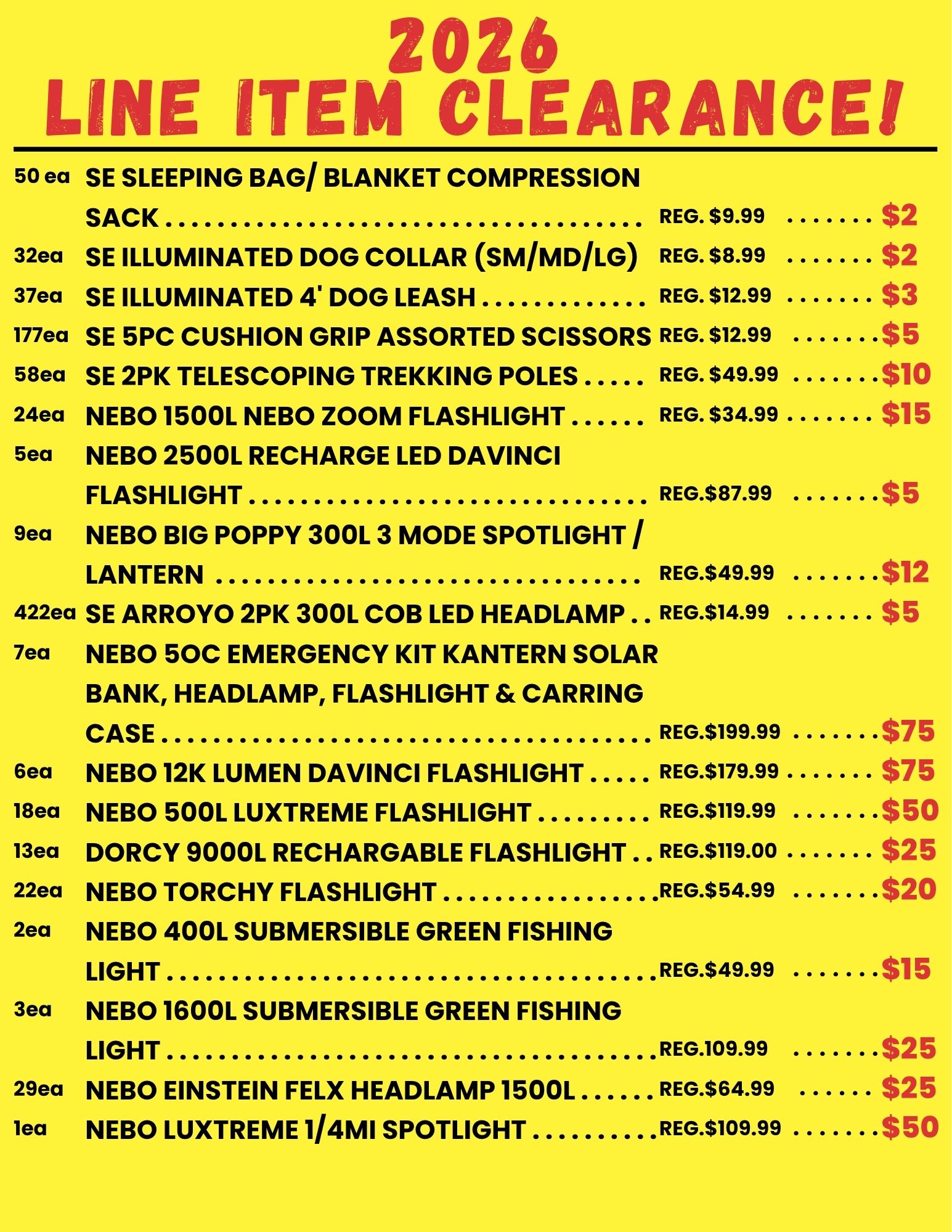 BROWSE OUR LINE ITEM CLEARANCE SALE FOR 2026!